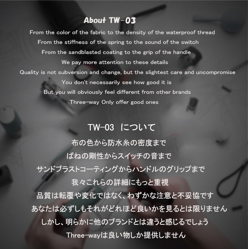 Three-wayは基本理念に基づいて高品質な製品に誇りをもって全世界に提案・提供することで相互の社会に貢献してまいります。2018年販売量は170万本突破したZDZシリーズの新作ZDZTW-03(全世界10000本限定発行)をご紹介します。