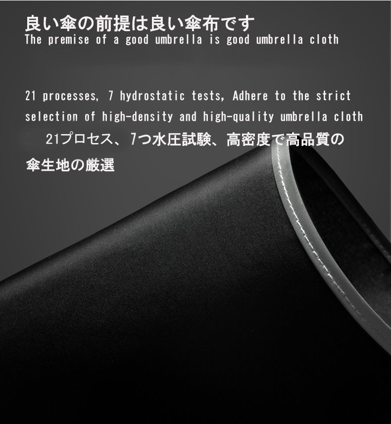 傘の基本骨格となる親骨にはグラスファイバーを使用しました。このグラスファイバーとアルミの支柱を組み合わせることにより、傘として最も理想的ともいえる、高い耐久性と軽量性を兼ね備えるフレームを作り出すことができました。