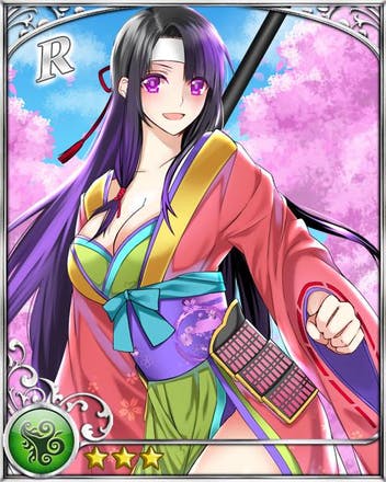 今回掲載しているのは巴御前です。ちょっとセクシー路線になりました(笑)。他の女傑も何人か変わりますので、アップデートした際にはぜひ、カードを全部チェックしてみて下さい♪ よく見るとカードの枠の形も変わっているんですよ!