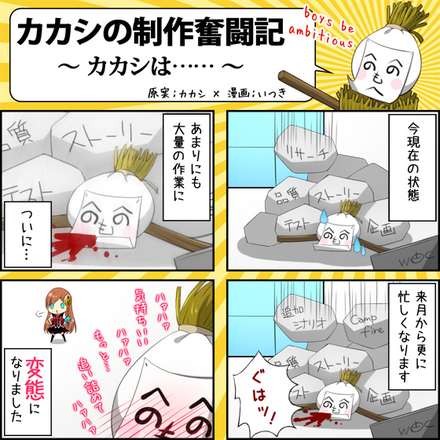 こんばんわー カカシです。 1.0.12をリリースしたあと.... うちのゲームは、なんとゲームのカード部門無料DLランキング1位になりました!!! ゲームの総合ランキンはまだまだ上位に入りませんね、まだまだ長い道が。 ここまで進むとは... 素直にうれしいです! もちろん、1.0.12アップデート版の再ダウンロードやゲームの協力者の頑張りでうちのゲームの活動をひろめました。多数のレビューサイトで紹介していただき、本当に感謝しています。 まだまだ改善点がおおいゲームですが、 まずゲーム品質を高めていきたいとおもいます。 とくボイスを充実にします。 一応声優さんたちに依頼しましたので、いろいろ録音させていただきます。 ボイスドラマで.... 私の声が聞こえるかもしれませんよ!!! 一応やられ役で、「ひでぶ!」にしようかなと悩んでいます。 campfire活動はあとのこり二日です。 もし御興味があるかた、ぜひぜひ共に伝説をつくるようにパトロンになってくださいませ! いただいた元気玉で死ぬ気で頑張りたいと思います。 よろしくお願いします。 かかしより