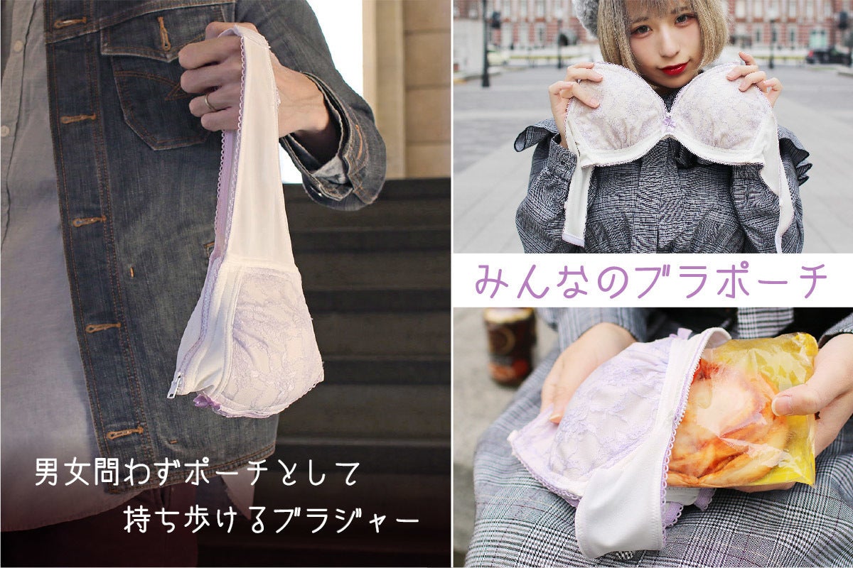 そしてこの度、それらに続くユニークなプロダクトの制作が進行しており、量産向けのサンプルが完成したところです。それがブラジャー型のポーチこと「みんなのブラポーチ」です。