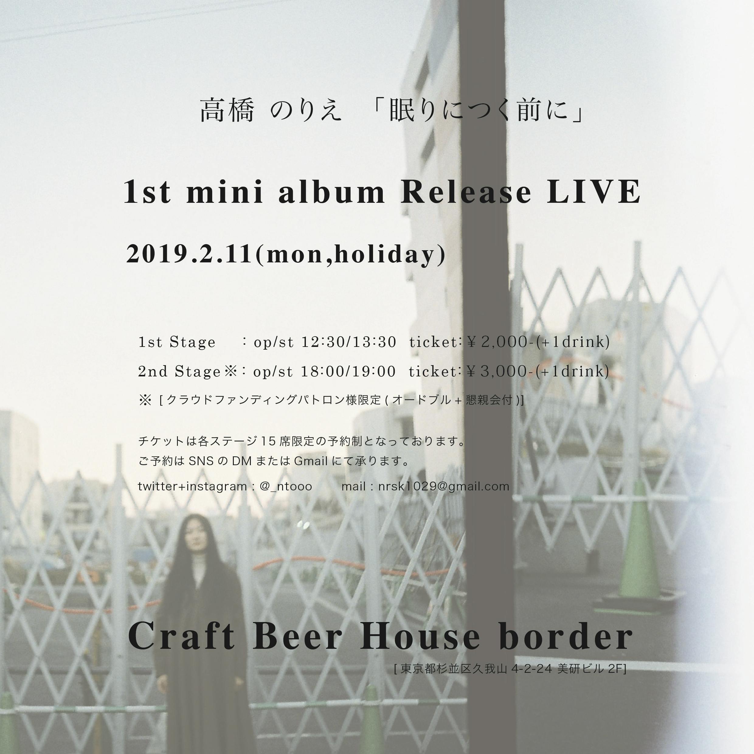 2019/02/15 05:57お疲れ様です!365日路上演奏家、高橋のりえです。「今年は暖冬で、よかったね」と言われましたが、あまり暖冬は実感できていません。。寒い日はまだまだ続くので、皆さま体調管理はしっかり!万全の体制で!気持ちを強く持って!行っていただけると良いかと思います。笑遅くなりましたが、2019年2月11日、ついに1st mini album「眠りにつく前に」リリースしましたー!そして、同日1st mini album Release Liveに足を運んでくださった皆さま、本当にありがとうございました!そして、この企画に携わってくれた全ての方々に本当に心から感謝します。ありがとう。リリースライブは京王井の頭線久我山駅にある、Craft Beer House borderというお店をお借りして開催しました!昼公演・夜公演ともにたくさんのご来場、本当にありがとうございました!昼公演では開放的な雰囲気で、ゆったりとした午後の昼下がりになるように。最後はアコーディオン奏者の玉那覇正樹さんとご一緒しました。夜公演では、プロジェクターから壁に映像を映し出し、VJを取り入れるといった新たな試みをしてみました。音楽に合わせて変わる映像にも注目していただけたかと思います!そして最後は、ベースとパーカッションの方々をゲストとしてお迎えし(その名もダブル・トシヤ)(2人とも同じ名前)(ほかに思い浮かばなかった)アコースティックバンドでお届けしました^_^そして、最後の懇親会ではborder店長お手製のオードブルを振舞っていただきました!豪華なオードブル、クラフトビールにも合う最高の締めになりました。。ありがとうございました(^_^)とっても思い出深い、リリースライブとなりました。本当に、本当に、ありがとうございました!2018年11月21日からプロジェクトを開始してから、今までにないスピードで色んなことが起こりました。30万円という大きな金額を目標に始まった時は、不安で胸がいっぱいでした。でも、私が思っている以上の速さで皆さまからのご支援をいただき、更に10万円ストレッチゴールを設定させていただき、それも達成することができました。これまでの人生で、一番「ありがとう」という言葉を使いましたが、それでもまだまだ足りないくらい皆さまへの気持ちが溢れています。そして、出来上がった作品が届いた時は本当に、達成感と嬉しさで、さらに胸がいっぱいになりました。今回、クラウドファンディングという形でアルバム制作が出来たこと以上に、”高橋のりえ”がまた一つ階段を登れたような、そんな気がしました。そして、もっともっと皆さまに喜んでもらえるような作品や時間、形に残るもの残らないもの、そんなたくさんの可能性をこれからも作り続けていきたい!そう強く心に誓って、これからの活動の原動力にしていきたいと思います。何度も絶望した。自分が嫌になったし、何度も逃げた。だけど、命の続きを書き足し続けていくかぎり、その全てを受け入れていくしかない。誰にも押し付けられてなんかしない時間を、私たちは「生きている」と胸に刻んで。あなたが“あなたの明日”を生きられるように、眠りにつく前にそっとあなたの心へ寄り添えますように。今日(2019.2.15)で365日路上演奏生活を始めて235日残り130日どんな肩書きがあっても、私は私です。今後とも末永く、“高橋のりえ”をよろしくお願いします。秋田から上京してもう3年が経とうとしています。18歳の私は、こんなにたくさんの人が応援してくれるなんて、想像できてなかったよね。本当に、みんなのおかげです。有ることが難しいと書いて、有難う。心から愛を込めて。●お知らせ●昨日、リターンの発送をしました。皆さまの元へ、皆さまと一緒に作り上げた作品をお届けできるなんて、とっても緊張しています。良ければ、聞いてみた感想を教えてくれると嬉しいです。よろしくお願いします^_^◯ワンコーラスカバー動画・ワンコーラス作曲のプランを選択の皆さまへ◯ひとつひとつ丁寧にお作りしています。時間がかかってしまい申し訳ございません。2月中にメールアドレスに、順番にデータを送信しますので、もう少々お待ちください^_^こんな感じで、活動報告もここら辺で終わろうと思います!またお知らせがあったら報告ささていただきます!それでは、365日路上演奏家、高橋のりえでした!またねー! もっと見る