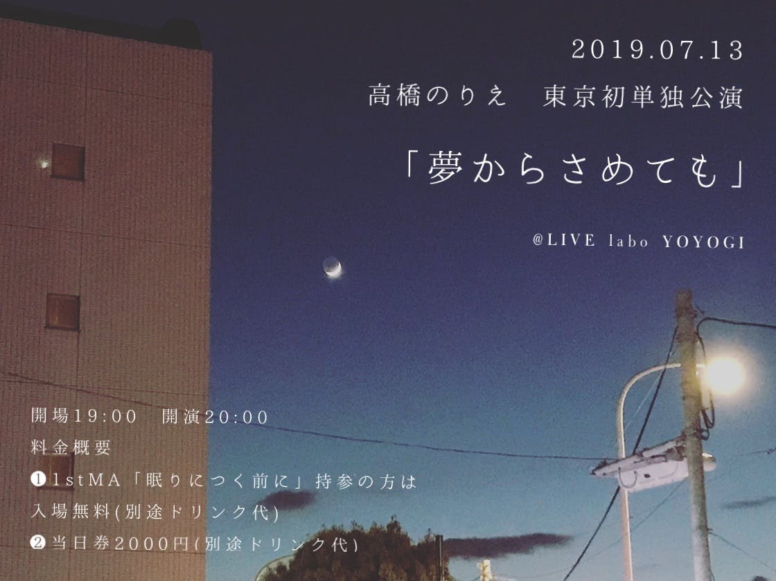 2019.7.13 高橋のりえ 東京初単独公演「夢からさめても」公演情報!