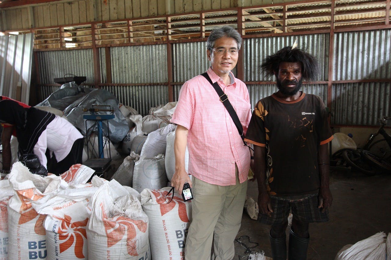 2、岩下珈琲がアントンさんから直接購入することで、パプア・コーヒー豆の販路拡大を図る。