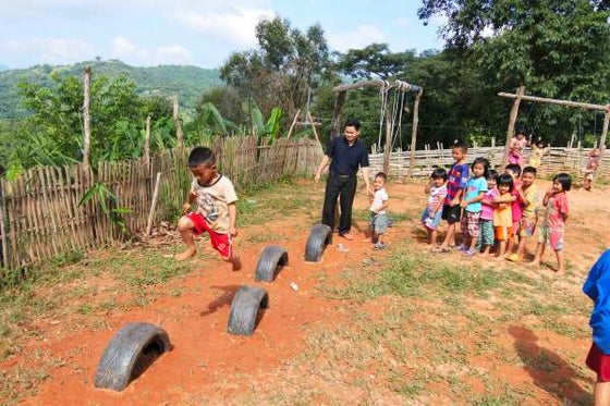 みなさん、こんにちは! 先日、支援対象の保育園に行って来ました。 まだ遊具をプレゼントできるだけの支援金が集まっていませんので、タイヤ屋さんにお願いして古タイヤを譲って頂き、それで遊んでもらう事にしました。 それだけでも子ども達は大喜びしてくれて、大はしゃぎして遊んでいました。 (転がして遊ぶには車のタイヤは大き過ぎてちょっと危ないようで、バイク用のタイヤがちょうどいいようです。次回用にバイク用タイヤ7本を確保済みです。) (早速先生が作業してくれます。) (完成し、みんなで記念撮影です。) (先生が居ないと無政府状態で、すごい事になります。) (先生が指導してくれて、一安心です。) 子ども達のかわいい動画もあるのですが、アップロード方法がよく分かりませんので、後日アップロード致します。 支援金が集まりましたらこの保育園には、雨天時にも室内で遊べ、手先を使う玩具等を寄付したいと思っていますので、よろしくお願いします。