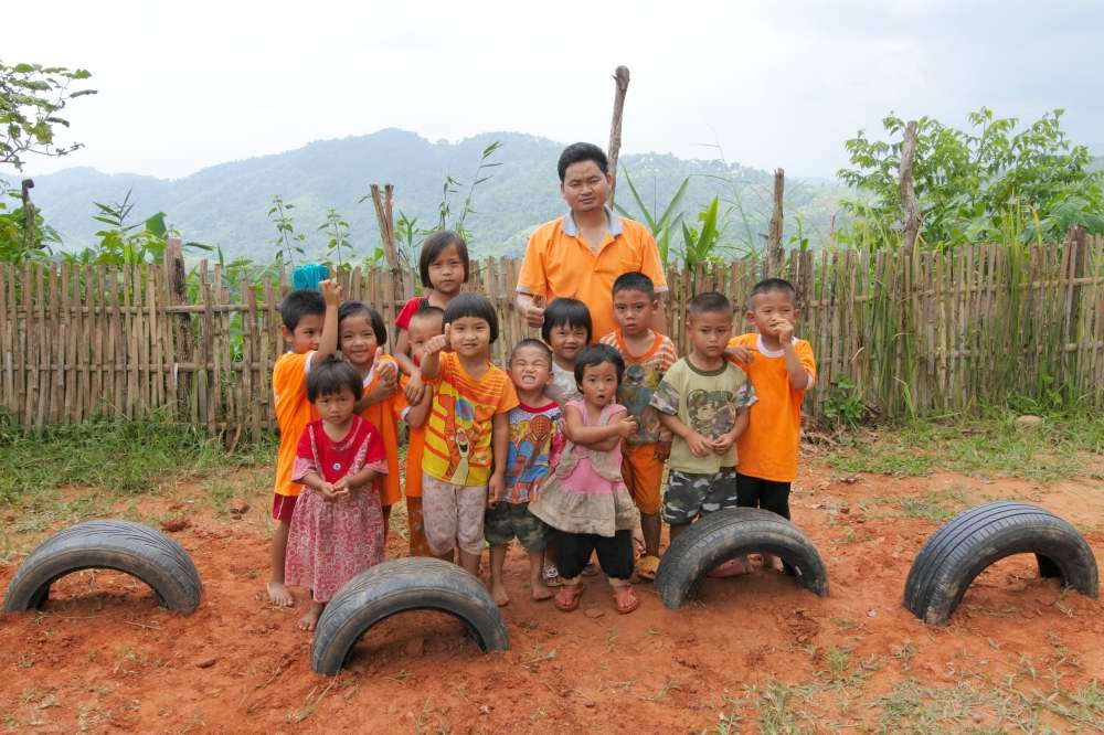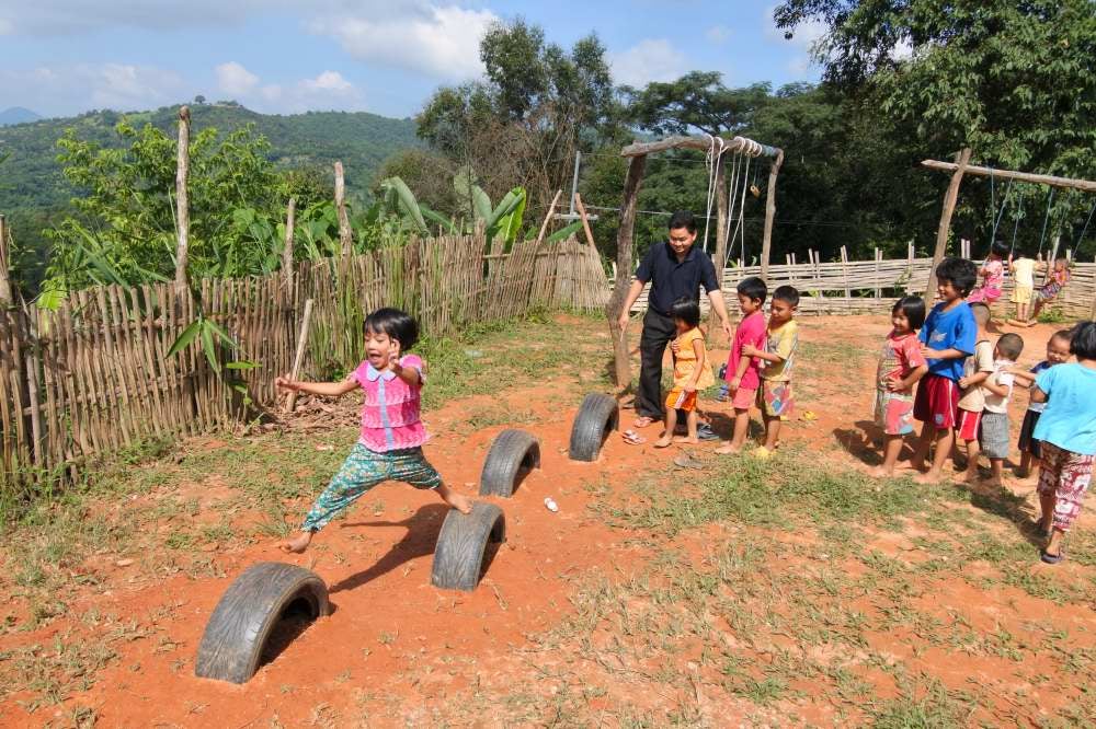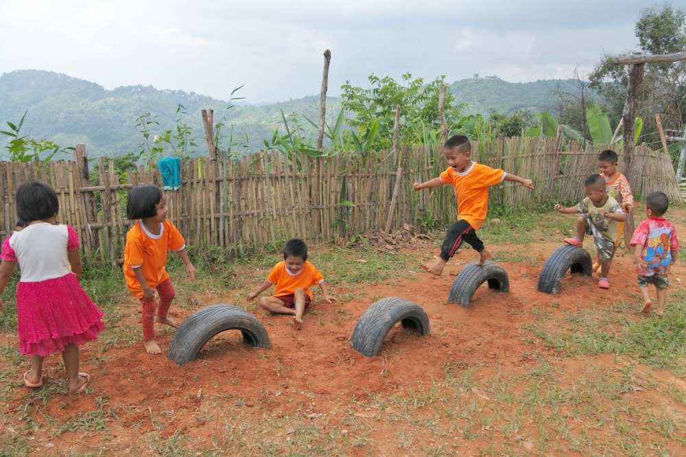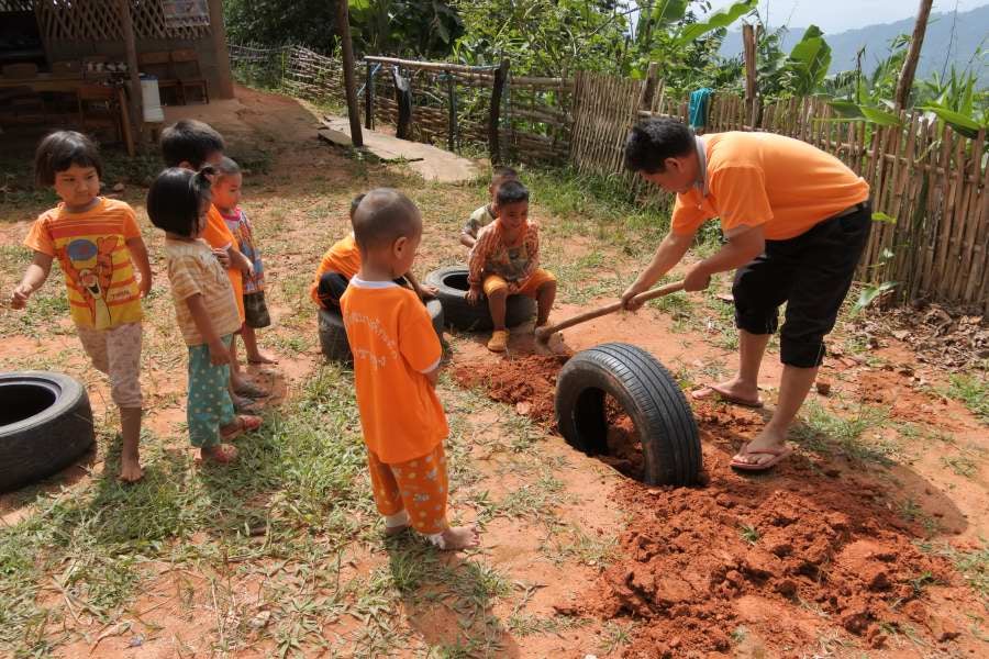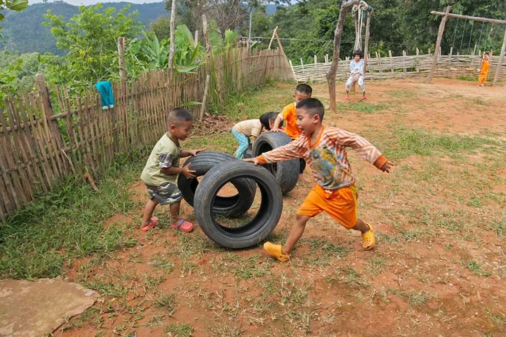 まだ遊具をプレゼントできるだけの支援金が集まっていませんので、タイヤ屋さんにお願いして古タイヤを譲って頂き、それで遊んでもらう事にしました。