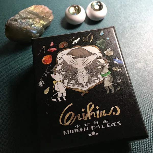原則、展示と委託販売のみで通販をしていない鉱物ドールアイですが、今回は「人形の一部」として例外的に写真集特典・リターンという形で数点を特別に通販致します。既に販売終了している、イラストレーター「ねこ助」コラボBOXにお入れします。いずれも両眼ペア、各1点限り。