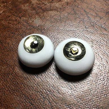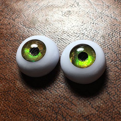 虹彩に各種鉱物、瞳孔に雲母、角膜レンズにガラス、他に樹脂等の複合素材からなる織尋オリジナルの人形用鉱物義眼です。