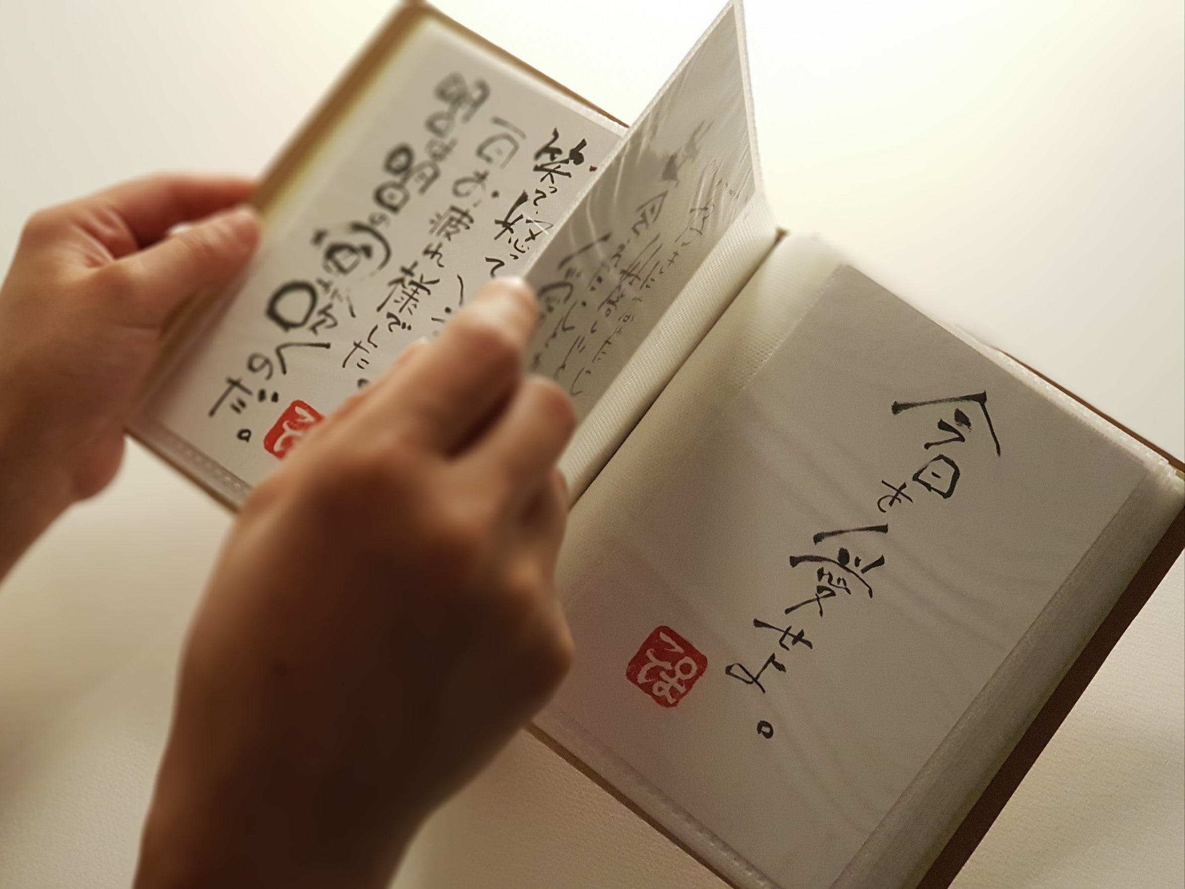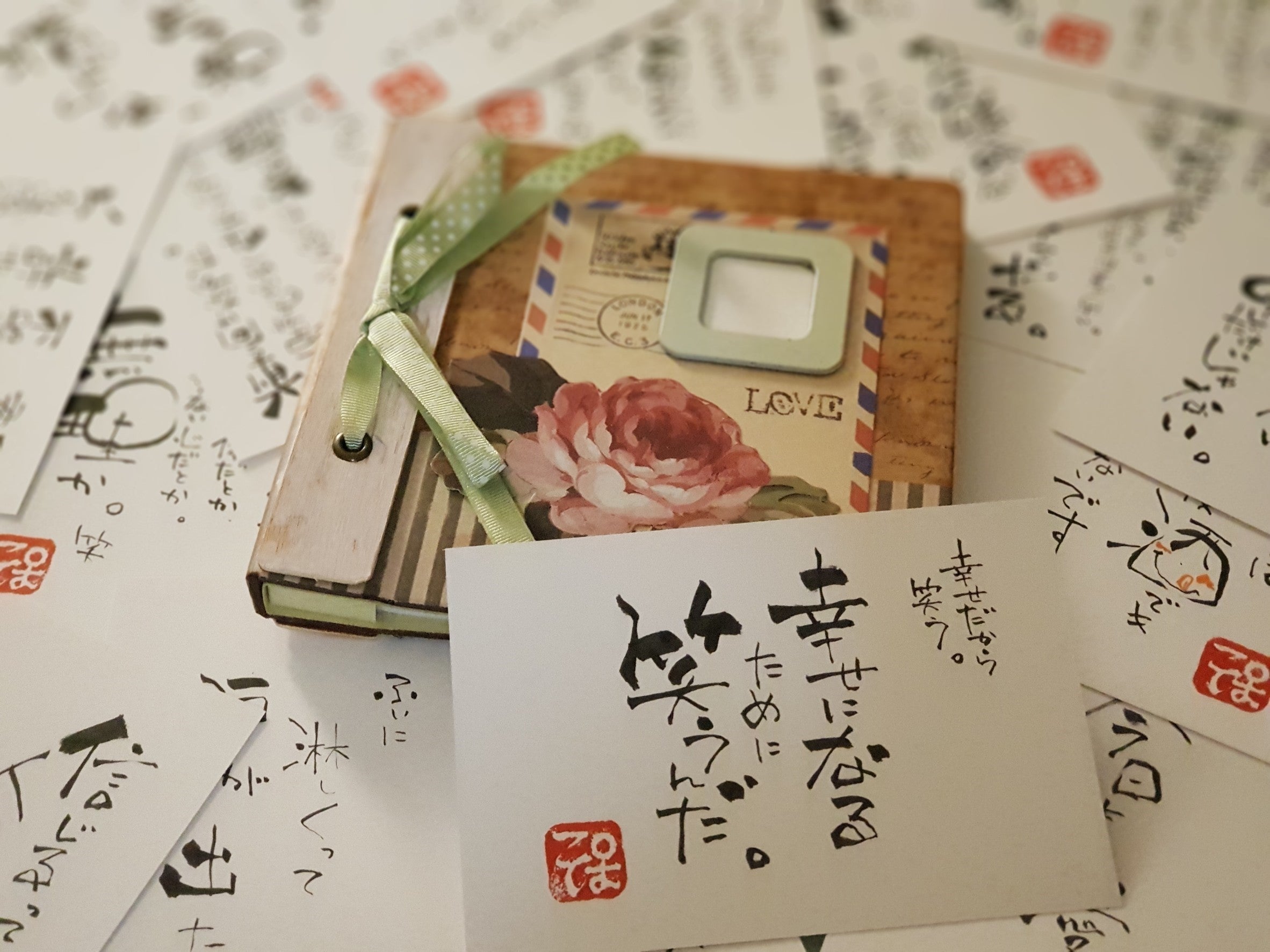 そんなある日、書いた言葉を整理しようと、フォトアルバムにハガキを入れた時でした。