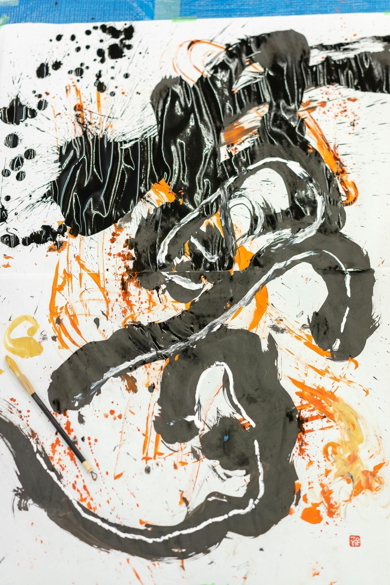 また、書芸パフォーマンスも行い、