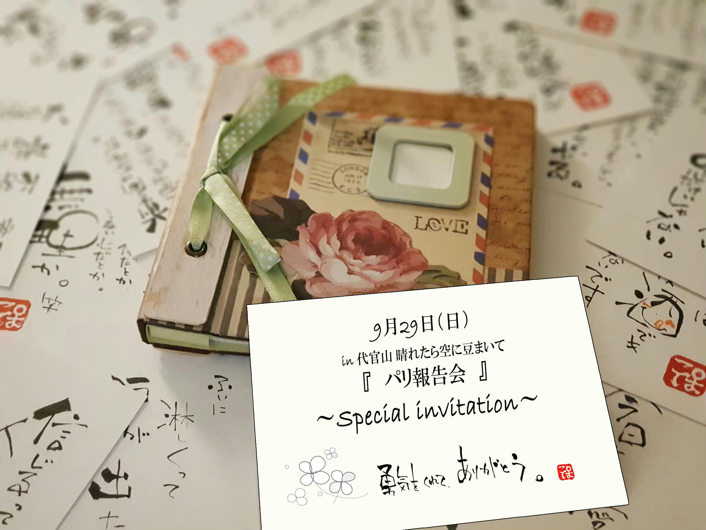 2019/09/22 22:11いよいよ今週末開催!!!パリ報告会は今週日曜日の開催です!!ご支援いただいた方には別途メールでご案内させていただいております。そして本日、当日受付でお見せいただくパスを出席の回答をいただいた方にお送りいたしました。(※届いていない方はお手数ですがご連絡くださいませ)動画制作や準備など…バタバタしていてあっという間の日々でした!どうやってこのプロジェクトが始まって、どんな人が協力してくれたかどんな思いが詰まっているか・・・15分と少しの動画に詰めました。当日どんな会になるか、私もドキドキしています。今回出席が難しい方には後日動画をデータにでお送りいたしますので今しばしお待ちください!あと一週間…! もっと見る