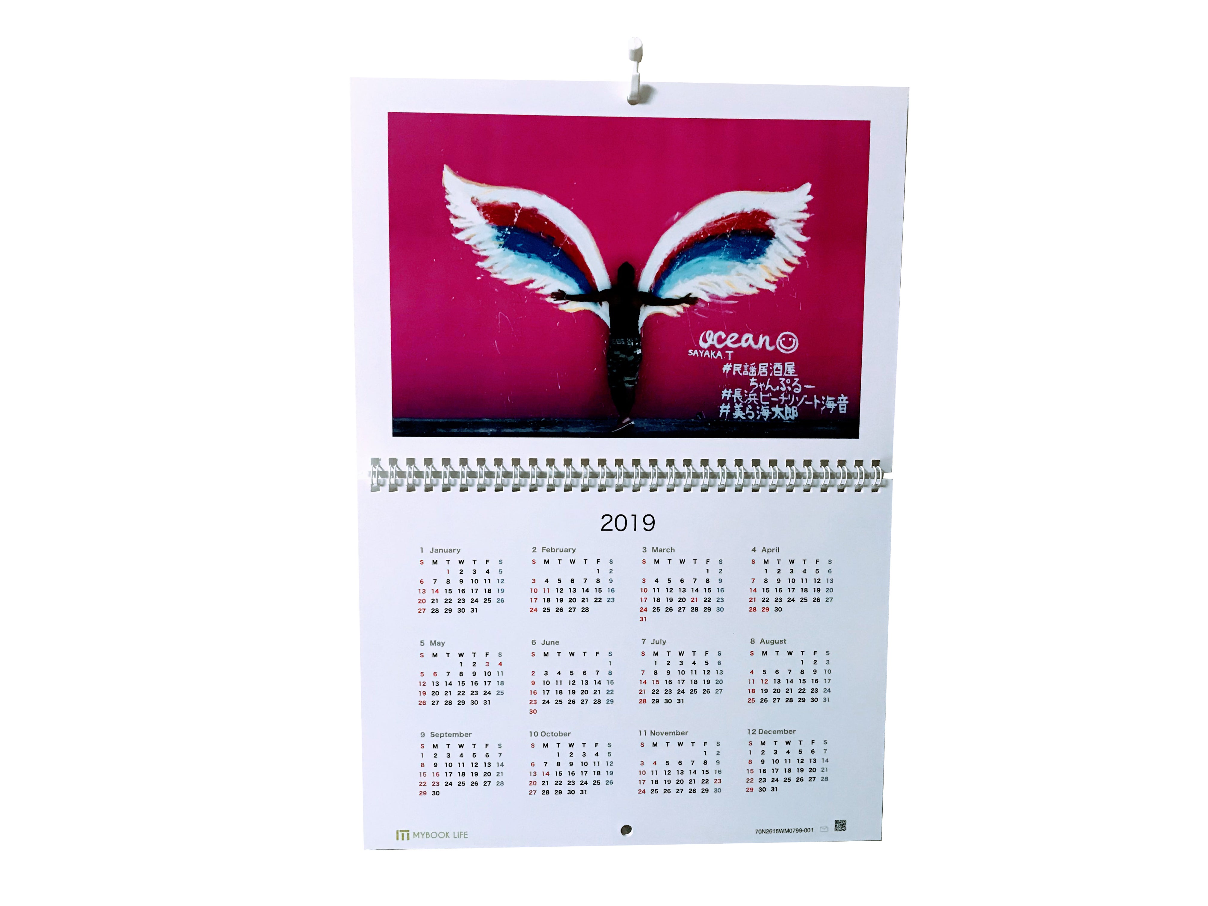 計13枚の写真が印刷されたシンプル実用的年度別壁掛けカレンダーの実物です!