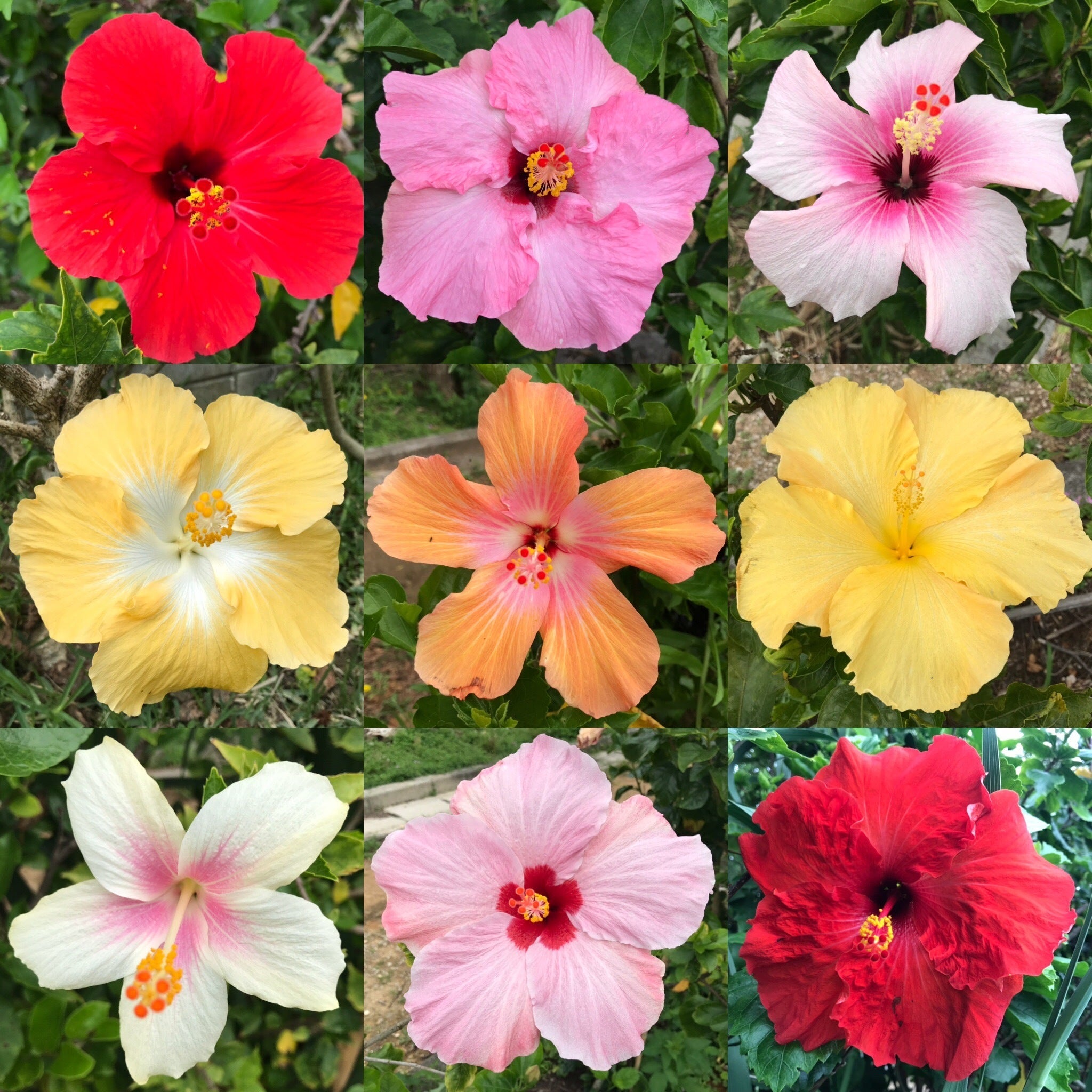 ハイビスカスには色や形など様々な種類があるのをご存知ですか?沖縄では定番の赤以外にも色々1年中カラフルに咲いているのです!