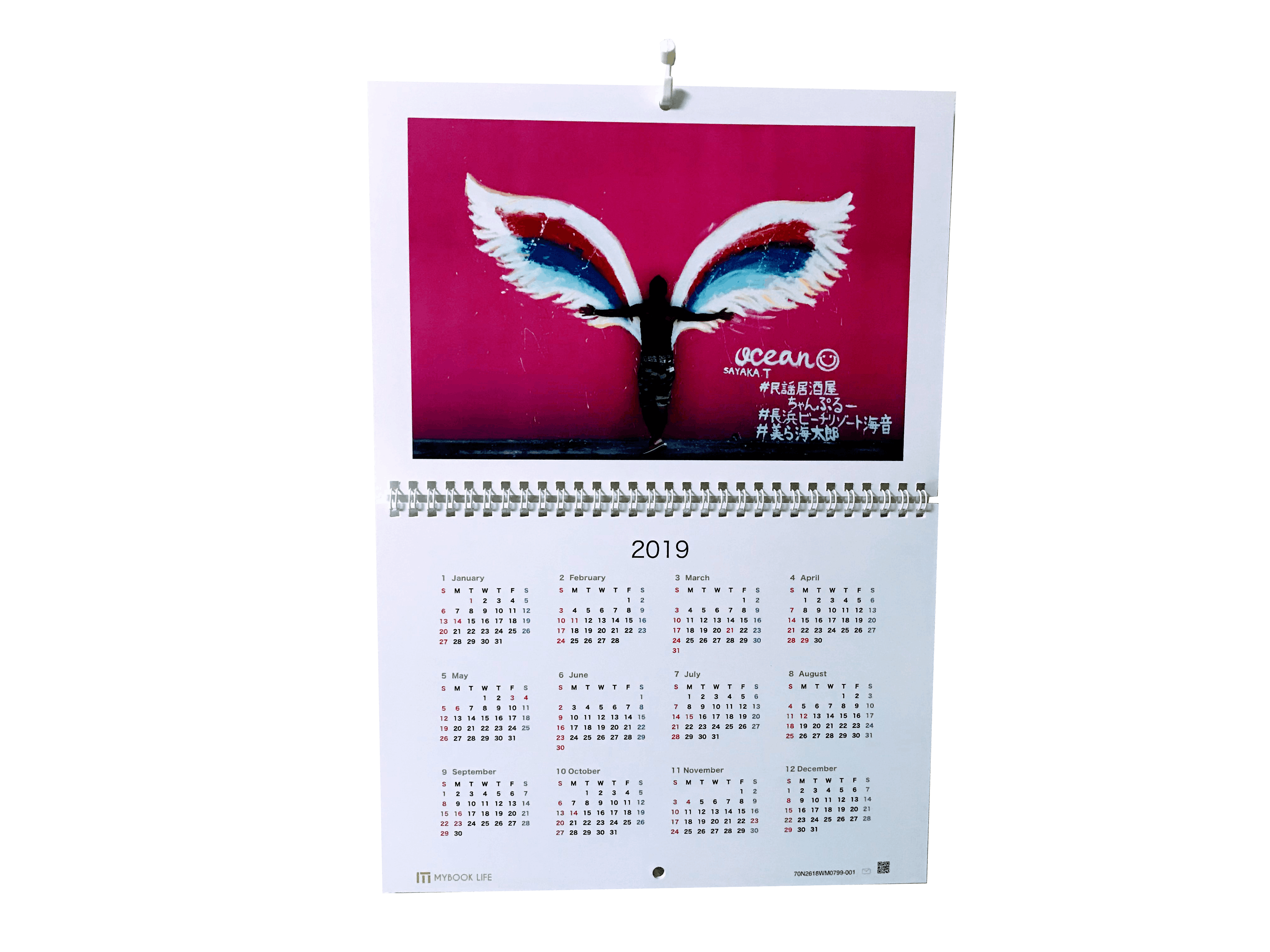 計13枚の写真が印刷されたシンプルで実用的な年度別壁掛けカレンダーの実物です!