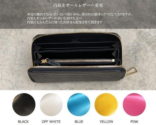 また、クロコダイルレザーのみYKK社の最高級エクセラジップを使用いたします。