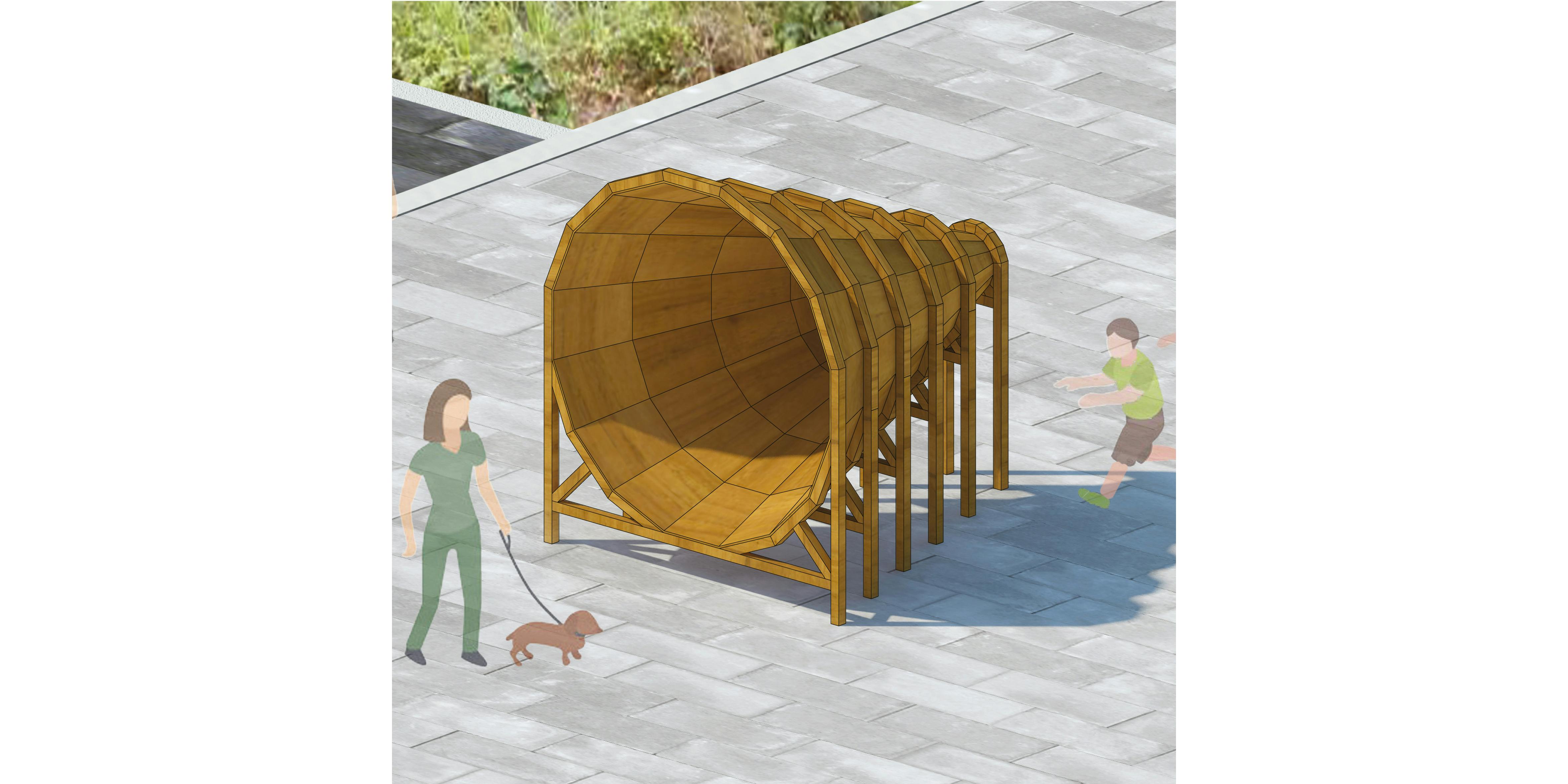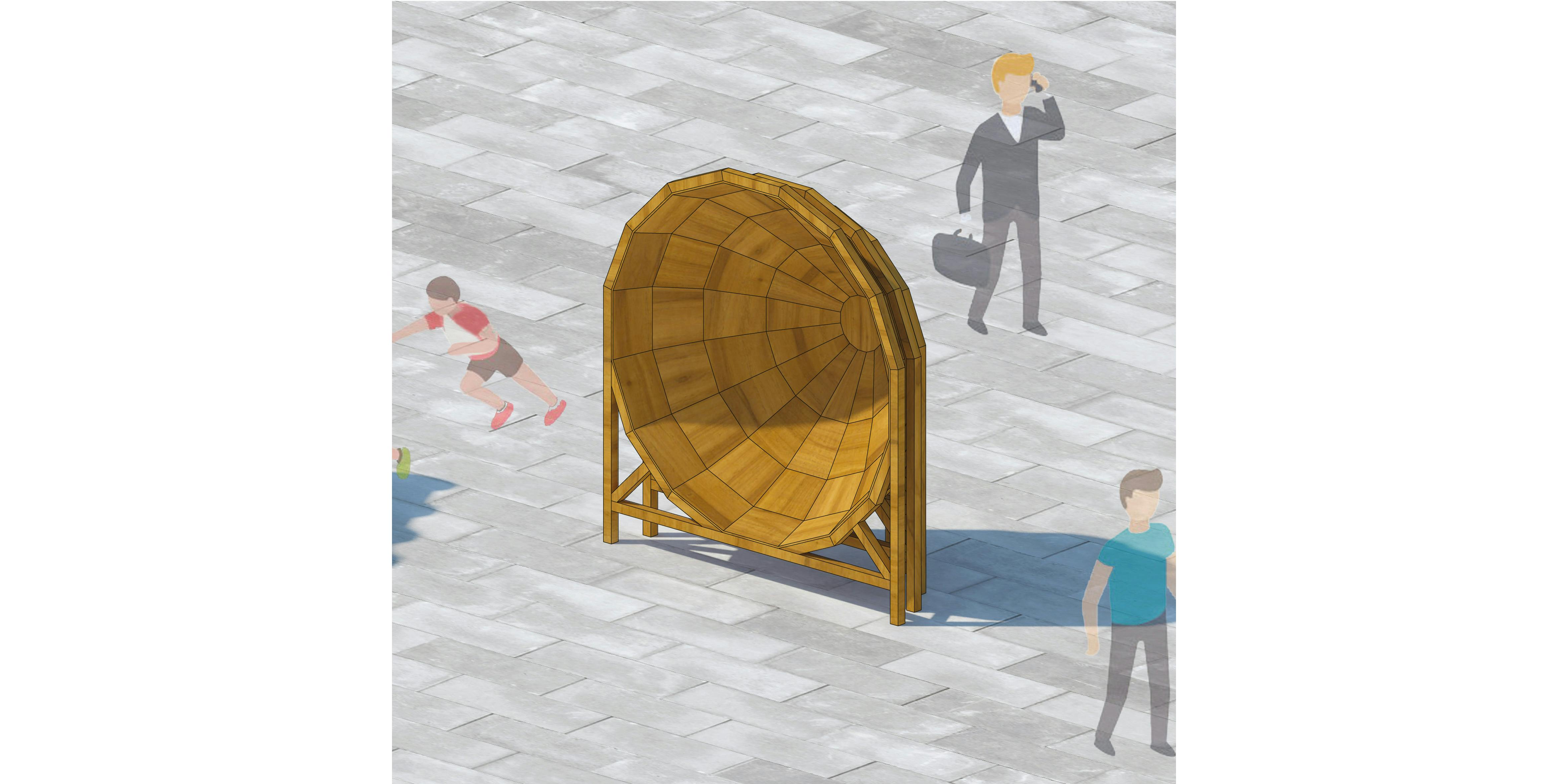 汽笛の低い音、カモメの鳴声、波が防波堤を打つ音、木の葉が風に揺られる音、公園の人々の足音、噴水が吹く音、自転車の車輪が回る音、雀の鳴き声、カップルの会話、犬の遠吠え、子供の笑い声、催しの音楽など。横浜には沢山の音が共存しています。これらの音は環境を構築する要素の一つありながら、自然に流れ過ぎて行く為、音の感受性を高めるストリートファニチャーを設け、新しい体験を提案します。