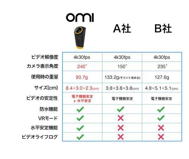 OmiCamは、長期間の開発・製造を行っており、アイディアベースの商品と違い、お使いいただける製品となっております。