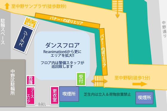 リアニ5、リアニ6と開催してきた中野駅北口暫定広場ですが、実は駐輪場建屋の一部が無くなりまして、フロアが少し広くなっています!少しと言っても動線が大きく変化するため、+500人くらい多く入れそうです。
