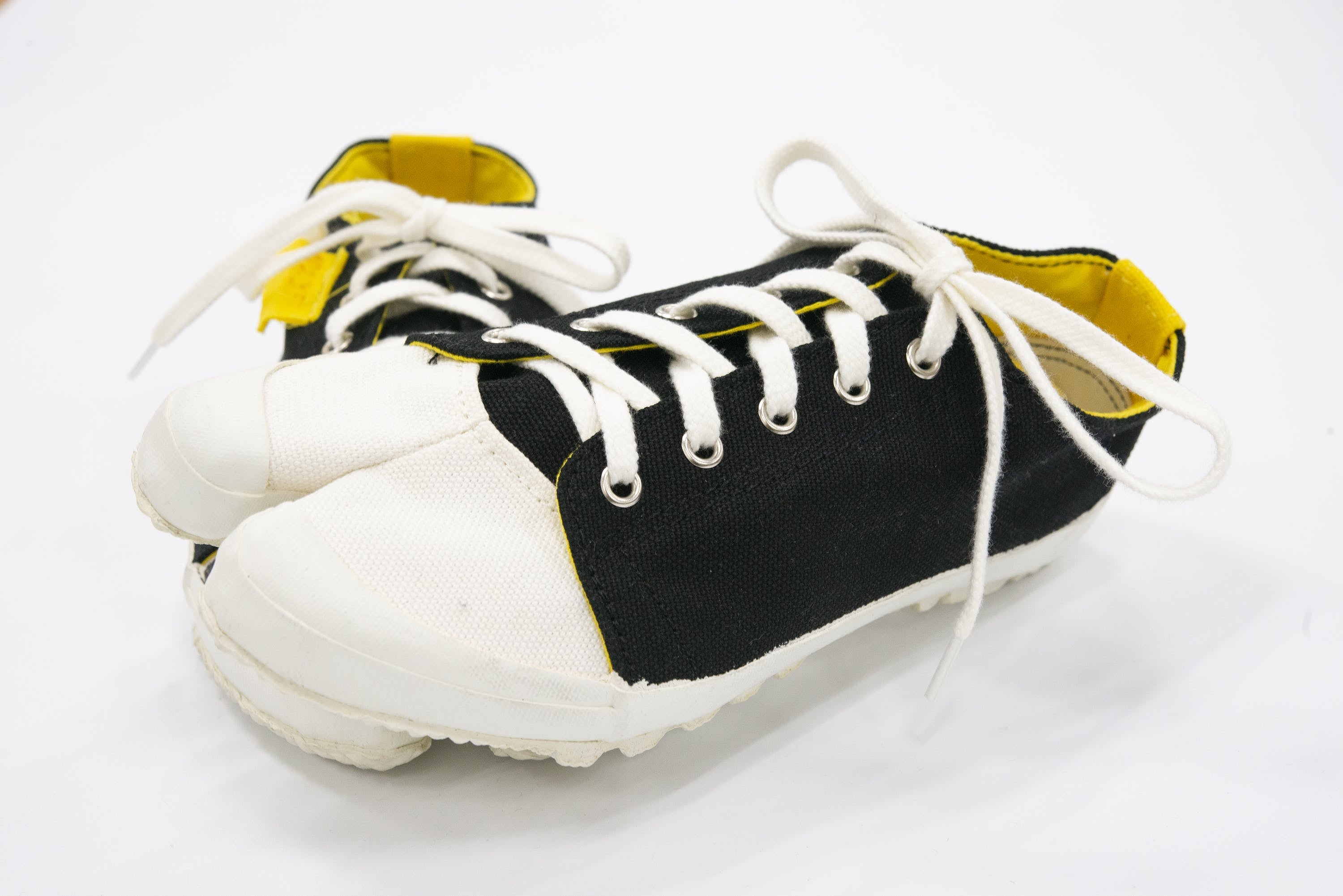 オリジナル足袋シューズ「みらい足袋」は、足袋をモチーフに、皆さんが普段使いでも履きたくなるスニーカータイプのデザインにしています。表地は黒をベースに先端を白い生地を配しています。