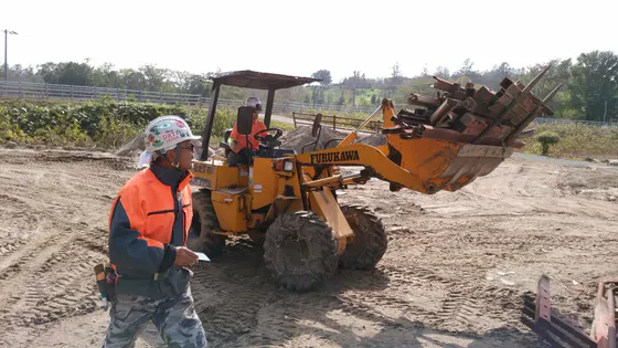 黒澤チームと共に、重機を使って泥出し。