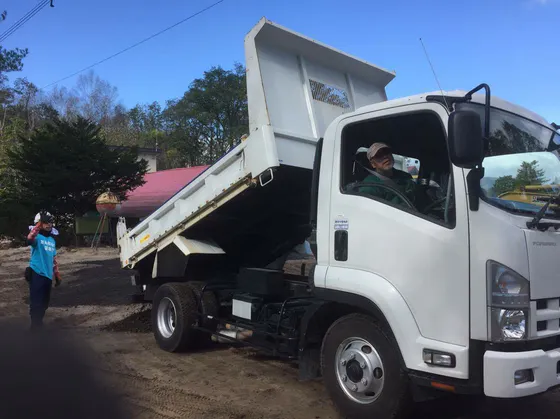 やんじーは、その土砂をあやの里へダンプで運ぶ。