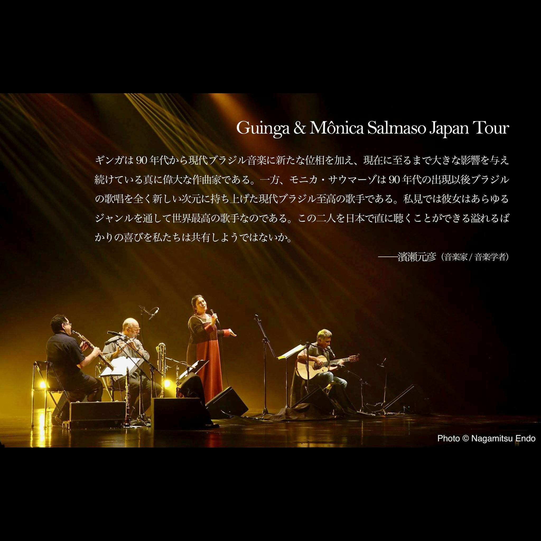 ギンガは90年代から現代ブラジル音楽に新たな位相を加え、現在に至るまで大きな影響を与え続けている真に偉大な作曲家である。一方、モニカ・サウマーゾは90年代の出現以後ブラジルの歌唱を全く新しい次元に持ち上げた現代ブラジル至高の歌手である。私見では彼女はあらゆるジャンルを通して世界最高の歌手なのである。この二人を日本で直に聴くことができる溢れるばかりの喜びを私たちは共有しようではないか。