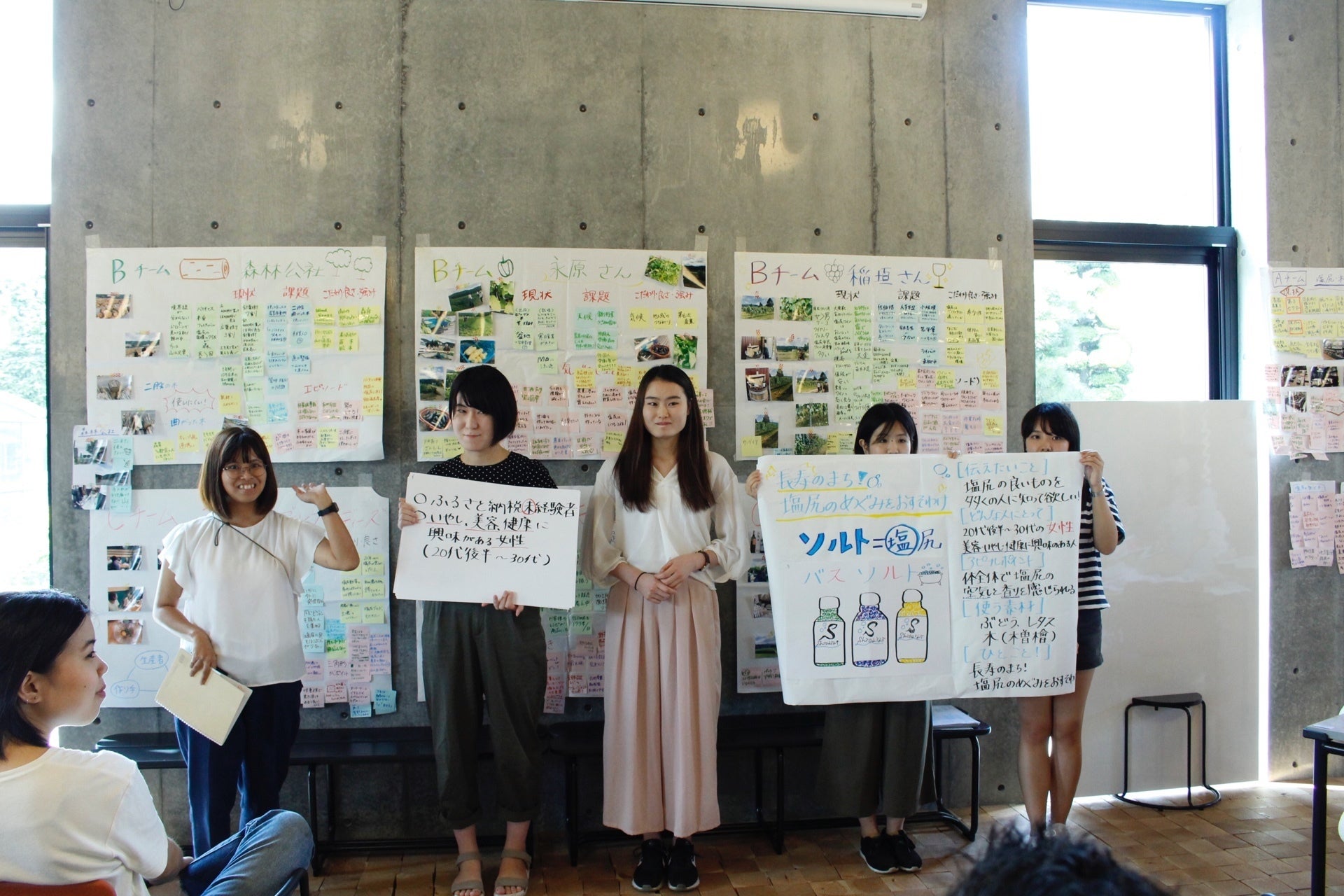 2018年8月、「しおじり商品開発プロジェクト」の名のもとに集まった9人の女子大学生たちは、まず長野県塩尻市にて3泊4日の合宿を行い、現地でさまざまな取り組みをしました。