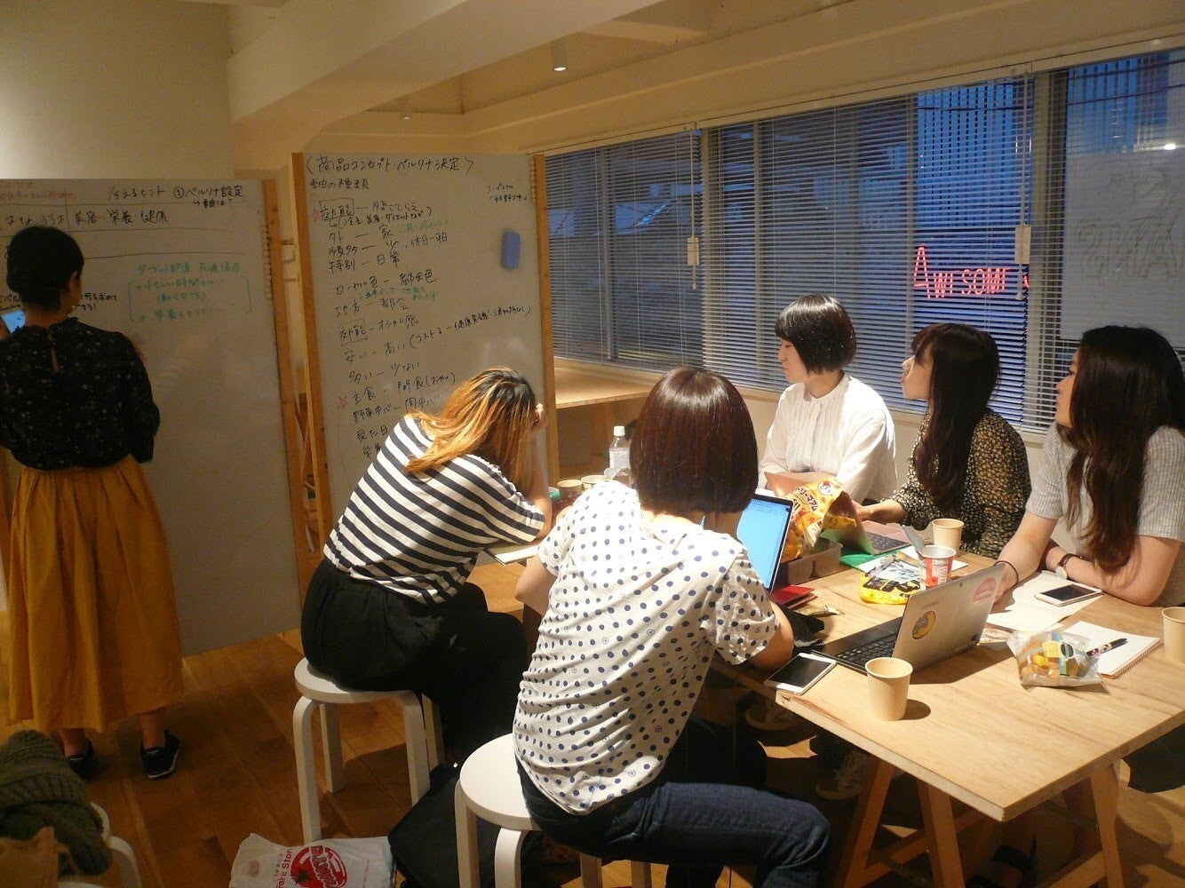 合宿終了後は、製造・デザイン・マーケティングチームに分かれて作業を進めつつ、毎週金曜日夜に全体ミーティングを行い、各班の進捗状況の共有やディスカッションをしながら徐々にアイデアを形にしてきました。
