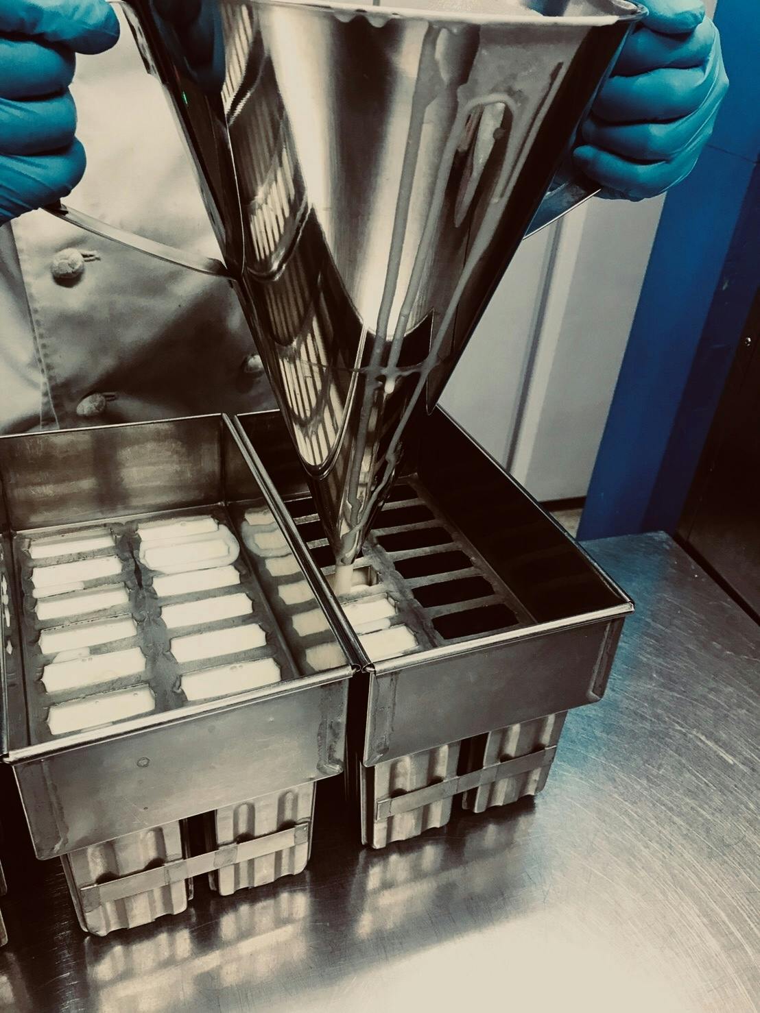吟醸粕を使ったアイスは酒粕自体が普通粕と比べ香りや風味が強く、更にあらごしにすることで酒粕の食感をあえて少し残します。アイスの中で吟醸粕の良さを最大限際立たせることに重きをおき、酒粕約50%の超濃厚な酒粕アイスに仕上げます。