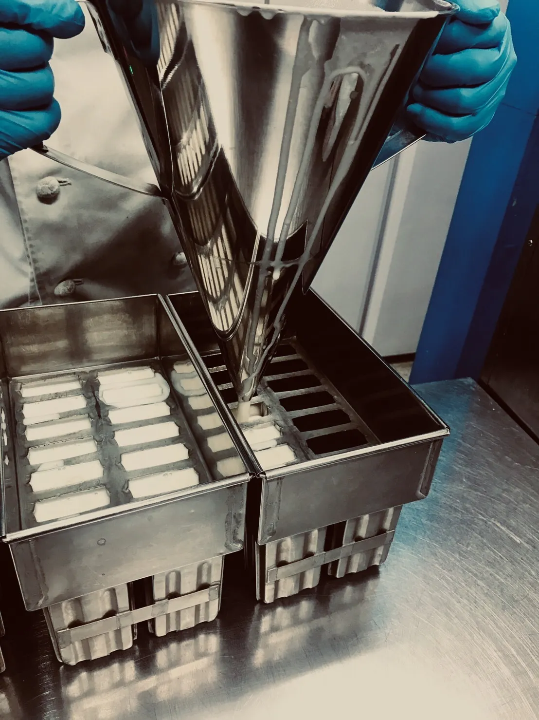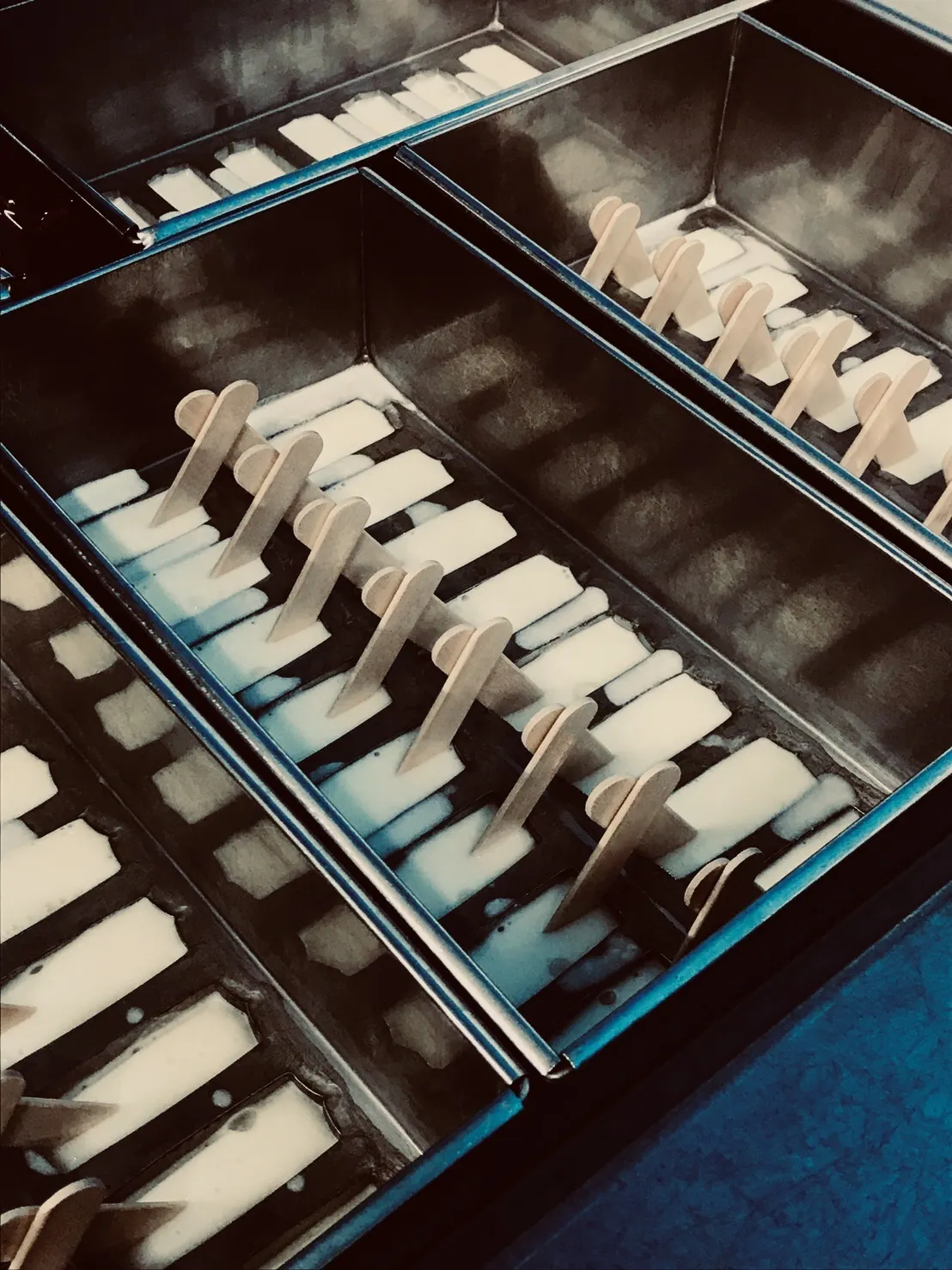 一度に作れるのは300本まで。材料を混ぜ合わせ、型に流し込み、アイス棒を差し込む。固まったら型から取り出し袋詰め。