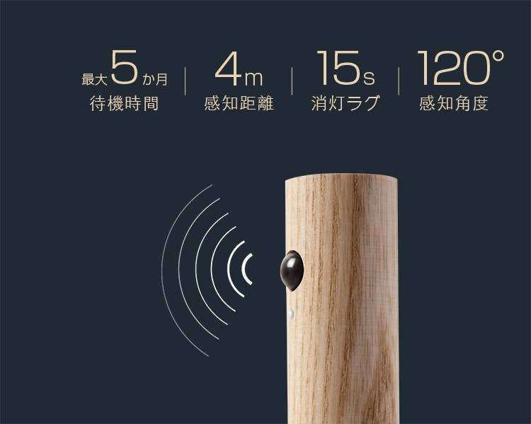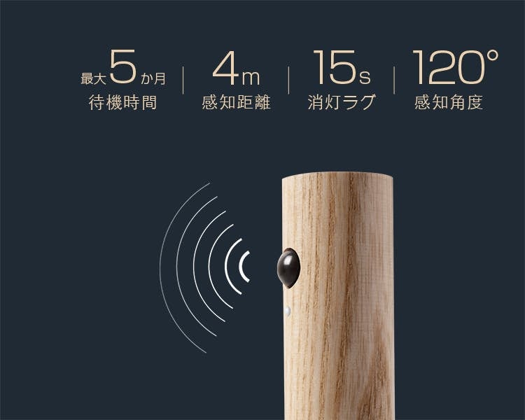 光センサー&赤外線レンズから4m・120°の範囲内に人を感知すると自動で点灯。さらに、範囲内に人が15秒間感知されなければ、自動で消灯してくれるので無駄がありません。