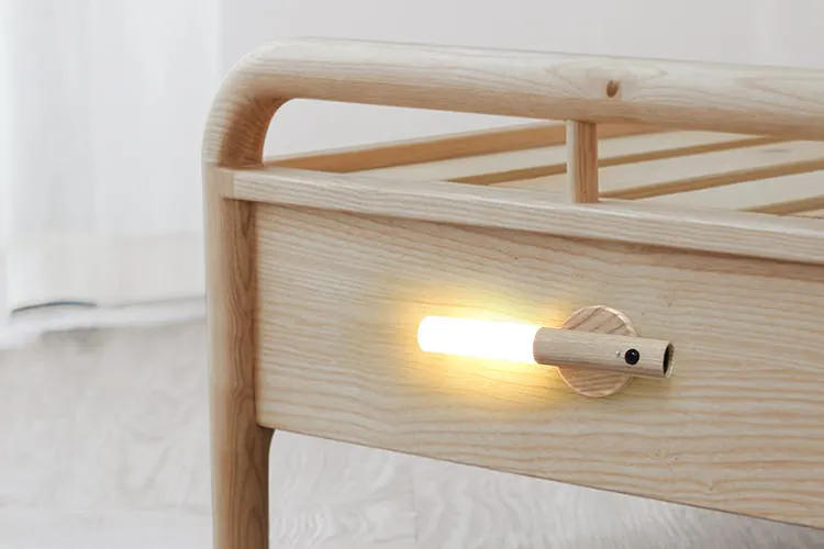 お客様の手に渡るすべてのセンサーライトは、木材の厳選から切断・加工まですべてが職人によるCNC加工を活用した手作り。選び抜かれたそのままの木材を採用しているため、木目調は本来のまま。二つとしてまったく同じ木目は存在しません。