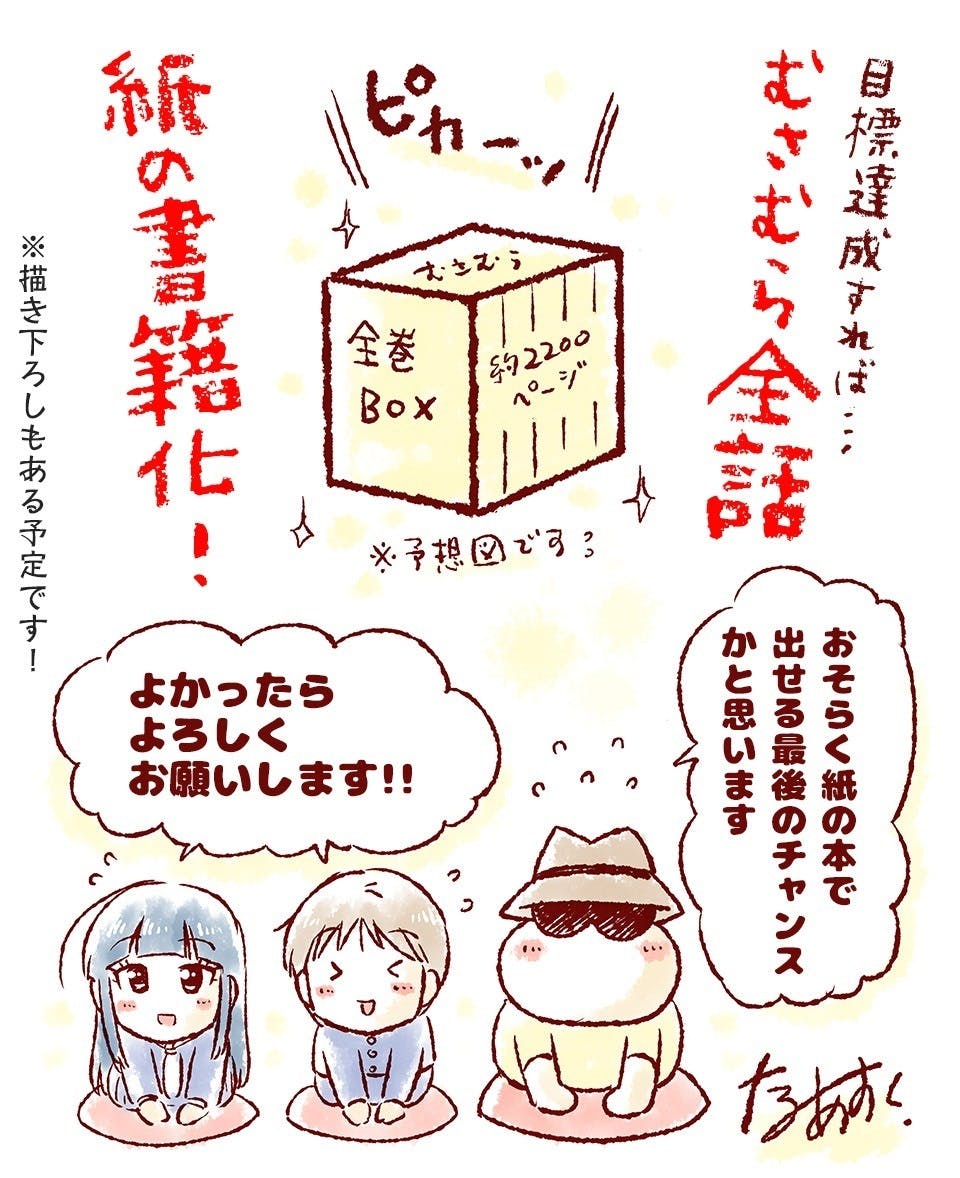 ご存知の通りGANMA!リリース時から連載していただいた、なるあすく先生(@naruasuku)著作『武蔵くんと村山さんは付き合ってみた。』が2018年12月10日(一般配信日)をもって最終回を迎えました。約2200ページ相当にもなる本作を今回は「クラウドファンディング」という手段を用いて全話書籍化を目指します。