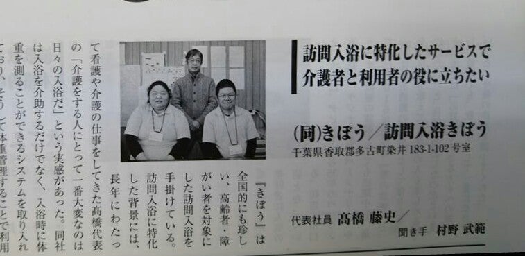 当社は、毎月 利用者は増えています。 それだけ体重計、健康管理が必要とされています。千葉県香取郡多古町染井から片道1時30分がエリアです。主に香取市~山武市の 周辺 を周り介護保険の利用者7割、障がい者3割です。くわしくは、 Google ホームページ 、 Facebook 訪問入浴 きぼう 名前で検索してください