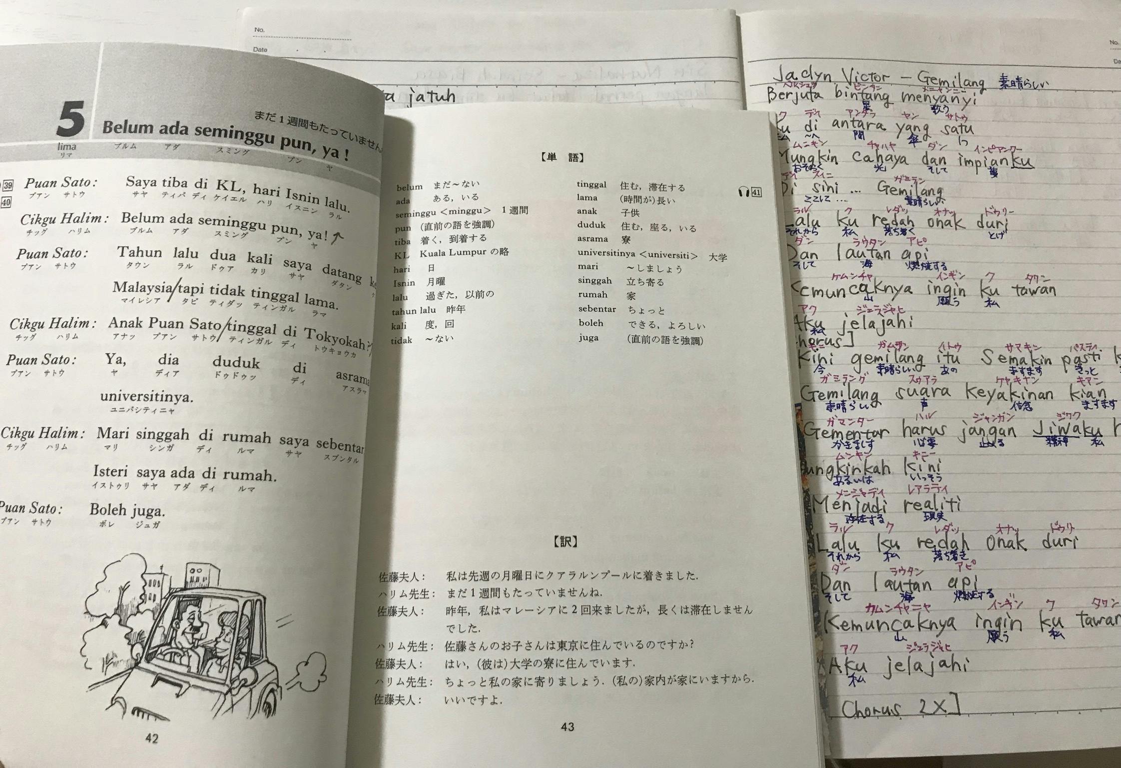 私は今、日本語教師になるための勉強とマレー語の勉強をしています。(もちろん、英語も!)目的は、マレーシアの友達とマレー語で会話するためです。もし、あなたが外国人に日本語で話しかけられたら嬉しくないですか?私はとっても嬉しいです。なので、私はマレーシアの友達たちを喜ばせるために毎日マレー語の勉強をしています。