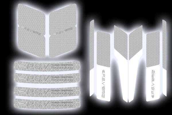P.S.V Technology(ピー・エス・ブイ テクノロジー)の全ての製品はこれらのコンセプトを加えデザインや反射位置が最適になるよう設計されています。貼付するだけで夜間の被視認性が大幅に向上します。