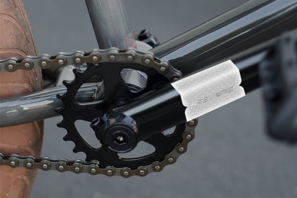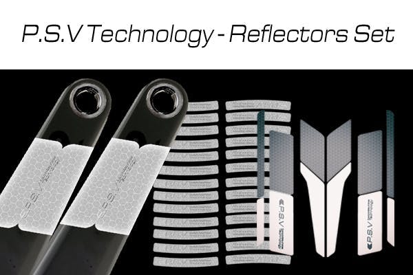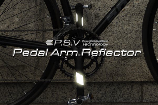 P.S.V Technologyペダルアームリフレクターを自転車のクランクアームに貼り付ける事により高い反射率を持つ反射面をクランクアームに与えます。