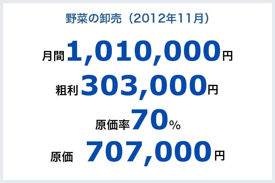 この野菜卸売の売上は最も業績が悪い時で、小売店から棚の撤去を命じられ精神的にも袋小路状態になっていました。