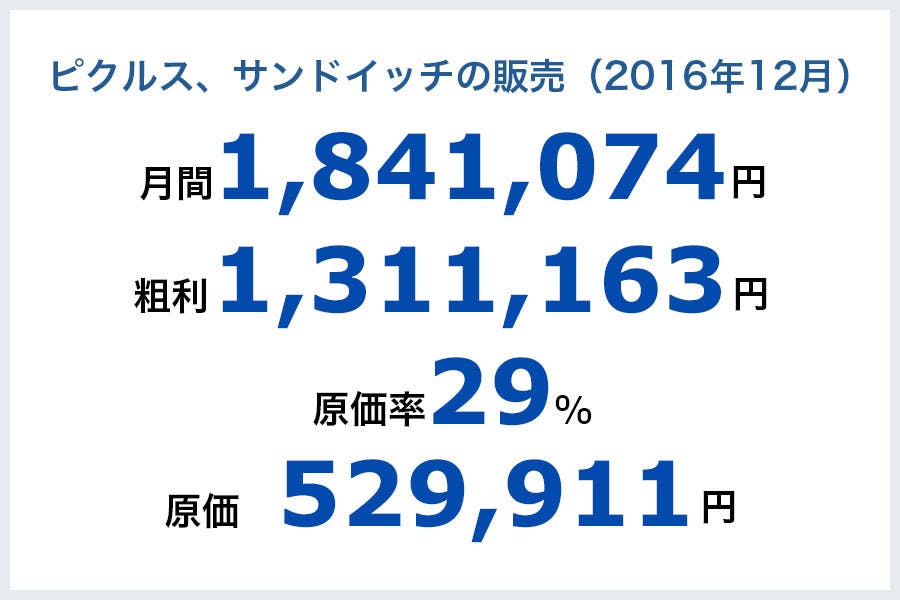 下の表はある月の卸売の売上と、ピクルスが軌道に乗り始めた時期の売上比較です。