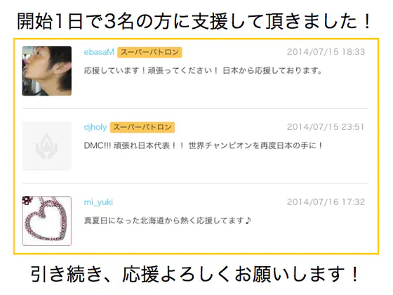 昨日プロジェクトが始動し、早くも3人のパトロン様に支援頂きました。