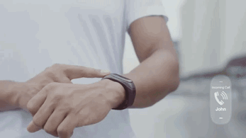 スリムなブレスレットの中に格納された小さなヘッドセット。着信をバイブレーションとカラーディスプレイでお知らせします。