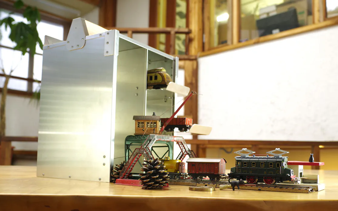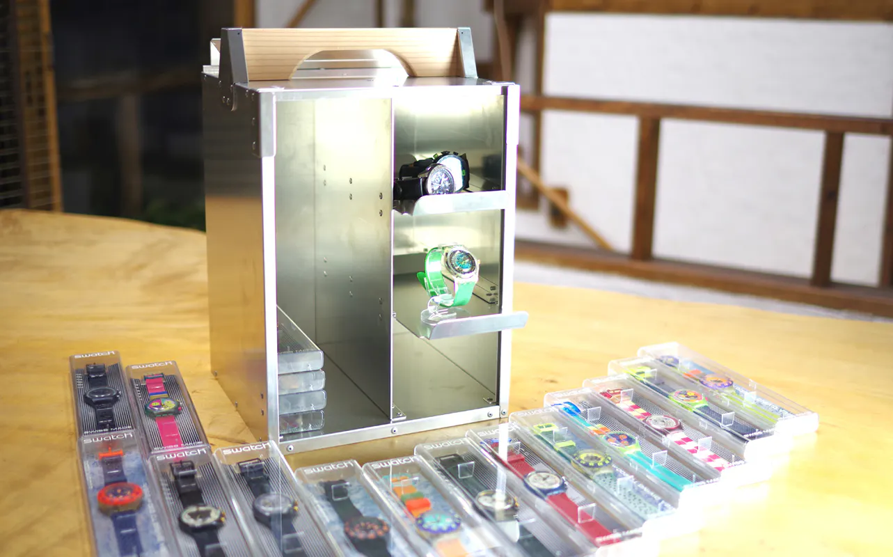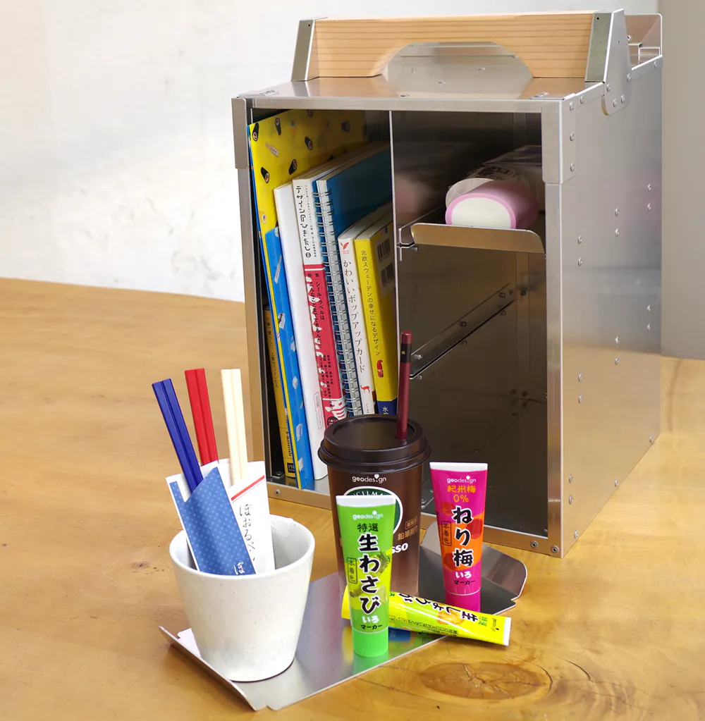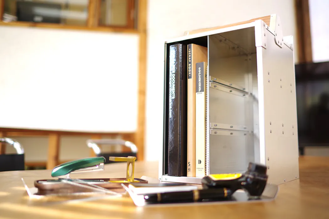 「オカモッティ」は、仕事以外でも大活躍。文房具や書類だけでなく、趣味のグッズの保管庫としてもピッタリです。アルミ製のクールな外観で、そのままディスプレイしてもカッコイイ。コレクションがフロントスライドドアから出てくる様は、まるで秘密基地です。