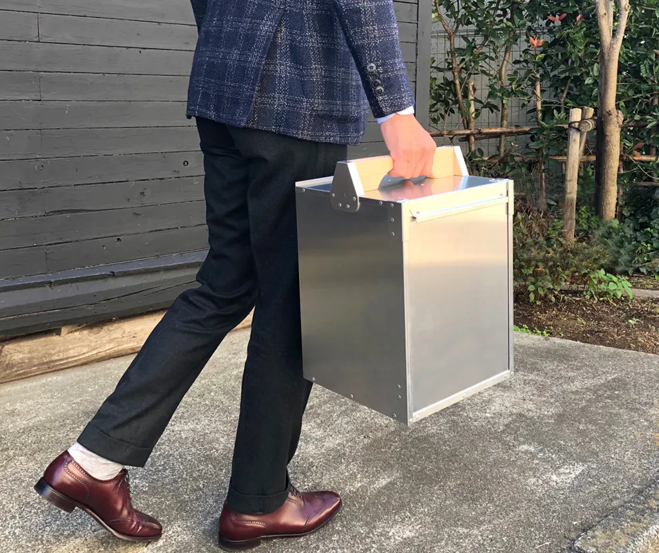 「オカモッティ」を持って出掛けよう!旅に出よう!注目度バツグン、中身を保護するアルミニウムボディ。人間工学の粋を集めた?木製ハンドルは、握り心地も抜群です。