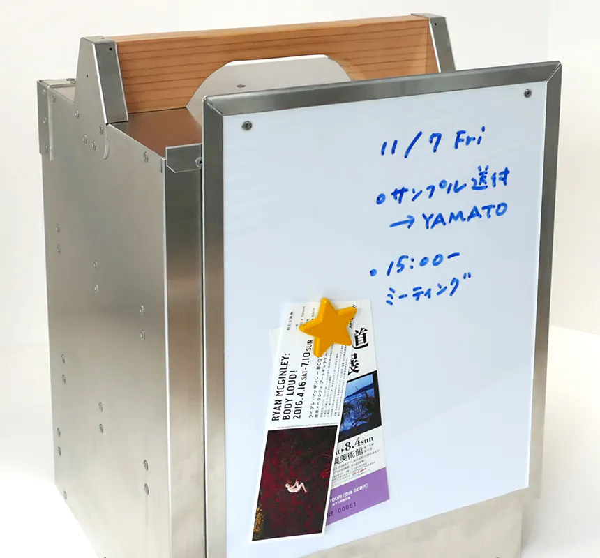 そして、ホワイトボードのフロントドアを持つWBタイプ。アイデア出しに、伝言板として、マグネットがひっつくので、メモした紙やレシート、チケットなどをくっつけることができます。