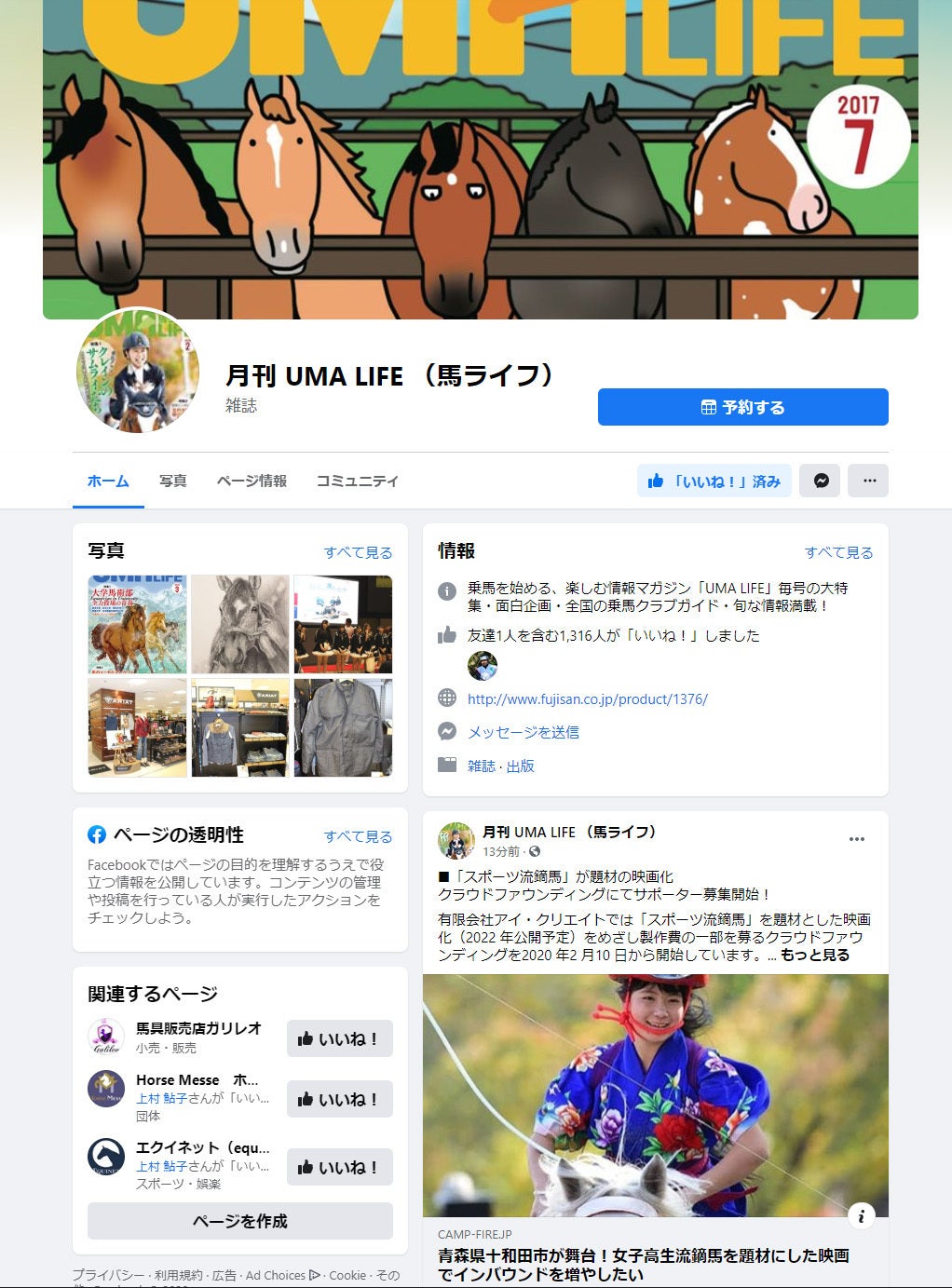 乗馬を始める、楽しむ情報マガジン 「UMA LIFE(馬ライフ)」 (発刊:メトロポリタンプレス)公式Facebookページにて、クラウドファンディングの内容を掲載いただきました。ご協力ありがとうございます。「UMA LIFE(馬ライフ)」 公式Facebookページ定期購読はこちらからFujisan.co.jpサイト