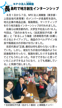 しょうごさんに長島町の役場の方をご紹介いただき、自分たちの活動を広報誌で発信していただけることになりました。