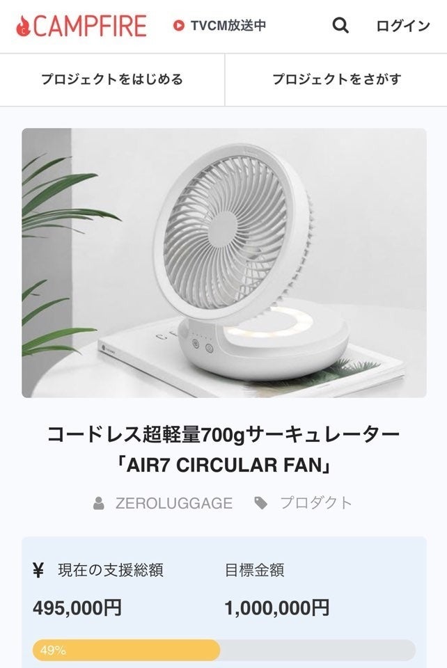 コードレスCIRCULAR FAN AIR 7がCAMPFIREに新しいプロジェクトとしてオープンされました。