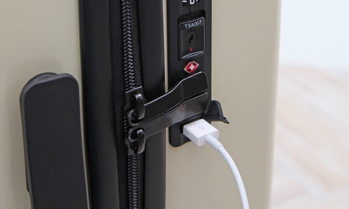 USBポートはキャリーケースの側面に位置しているので充電の際に水が入るリスクを減らし、安心して充電ができます!