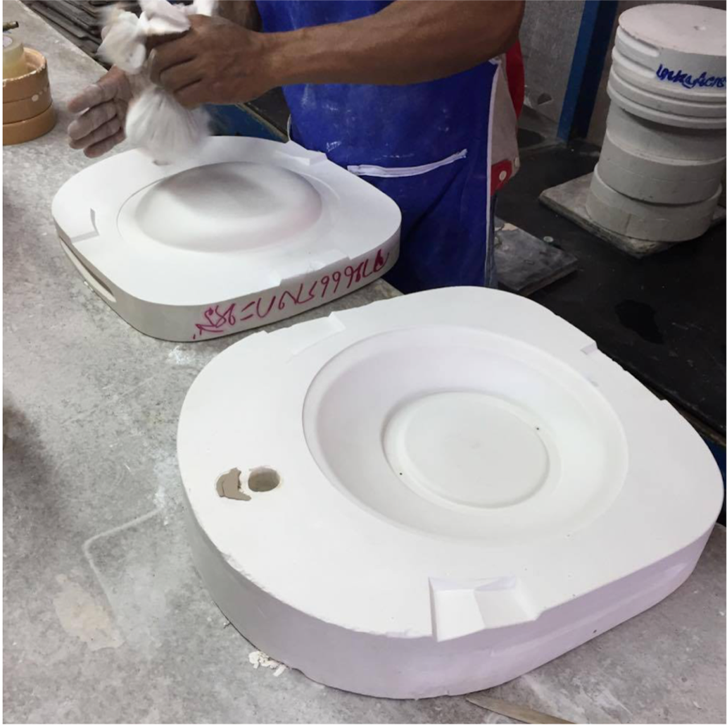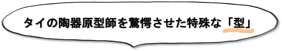 このカレー皿はアシンメトリー(非対称)な構造になっているので、カーブのところで型が引っかかって抜けず簡単に②の「型」がとれないことが判明。