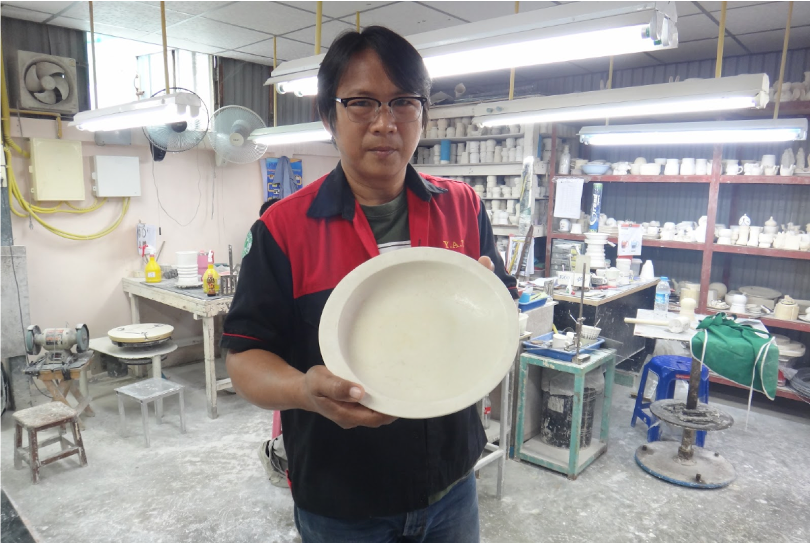 内心どう思っているのかわからないけど、黙々と均等に釉薬を塗ってくれるタイ工場の熟練お姉さん達には「白い恋人」を賄賂に渡して、頑張ってもらいました。